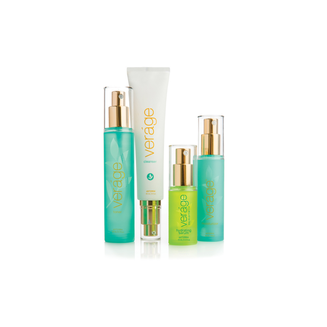 Verage es un sistema exclusivo de productos naturales para el cuidado de la piel que nutren e hidratan la piel para reducir los signos visibles del envejecimiento. Verage aprovecha los potentes extractos de plantas, emolientes y aceites esenciales CPTG para proporcionar a tu piel todo lo que necesita. Cada producto del sistema Verage contiene extractos de plantas que han sido ampliamente investigadas y se ha demostrado que favorecen una piel de aspecto joven. La colección de Cuidado de la Piel doTERRA Verage ofrece resultados que se pueden ver y sentir de forma natural. El uso diario de Verage favorecerá una tez suave, elástica y luminosa.