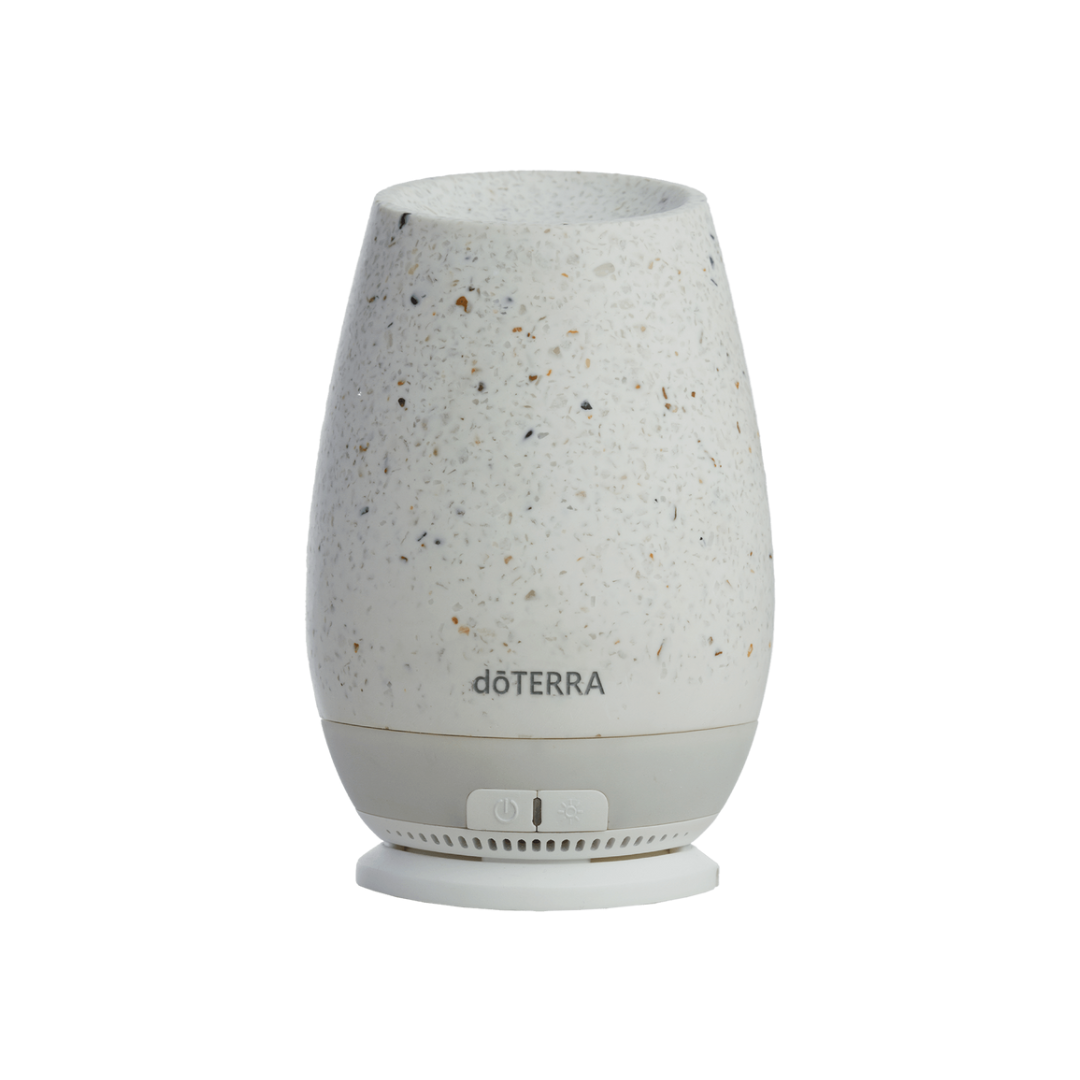 La carcasa exterior del Difusor Roam doTERRA, al estar hecha con piedra natural pulida, convierte cada difusor en único. El resto del difusor está hecho de resina reciclada ecológica, lo que contribuye a su belleza sencilla y natural. Gracias a su potente batería recargable integrada y la base de carga con la que viene, el Difusor Roam doTERRA te ofrece una experiencia de difusión inalámbrica y portátil sin precedentes, ¡perfecta para cualquier habitación de tu casa u oficina!