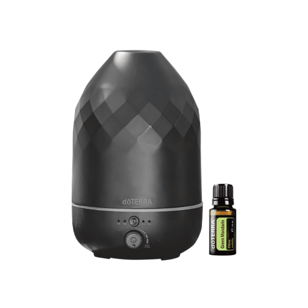 El Difusor Ultrasónico Volo™ de doTERRA tiene un diseño precioso con acabados de ónix y mármol, perfecto para cualquier habitación u oficina. El difusor Volo tiene una tapa de piedra de poliresina hecha a mano con un patrón de diamante personalizado y presenta diferentes ajustes de luz opcionales: sin luz, luz cálida y de color ámbar brillante. Este difusor único permite una difusión personalizable con múltiples ajustes de tiempo para que elijas la configuración que más se adapte a ti. Además, el difusor Volo™ está disponible en combinación con el aceite esencial de mandarina verde (15 ml). ¡Te encantará este fantástico dúo!