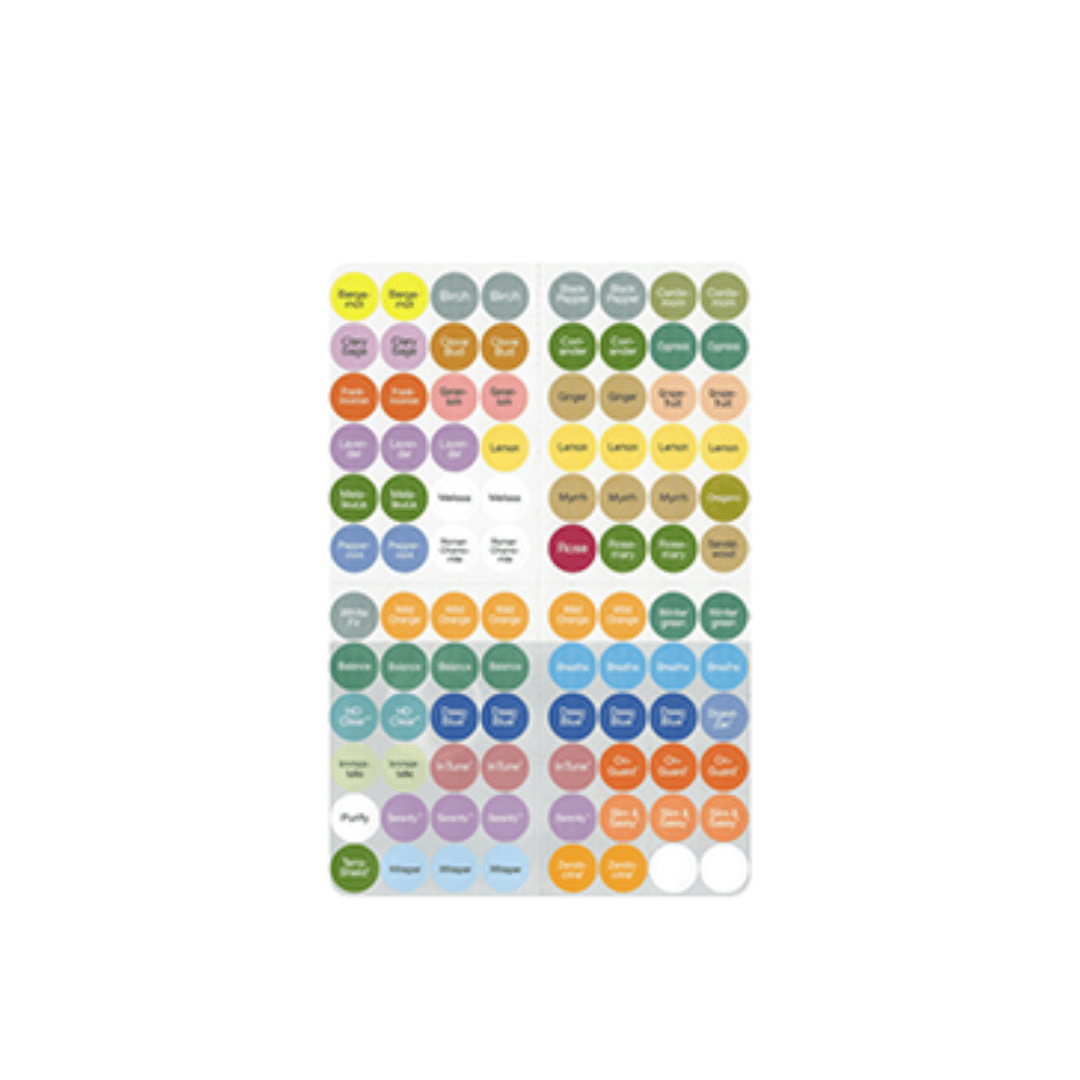 Seguimos en proceso de crear una nueva versión de la hoja impresa de pegatinas para las tapas, pero tenemos excedente de una edición anterior que estamos ofreciendo a un precio considerablemente reducido. Aunque una cantidad mínima de pegatinas contienen las versiones antiguas de algunos nombres de mezclas de aceites, la mayoría de las pegatinas de esta hoja aún se pueden usar, como por ejemplo los aceites tan populares como Lavanda, Menta, On Guard™ y dōTERRA Serenity™.