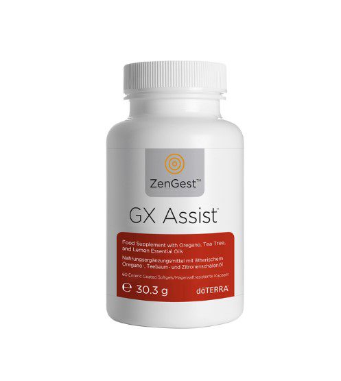 GX Assist es una combinación de aceites esenciales CPTG™ Grado Testado Puro Certificado y ácido caprílico. GX Assist está formulado para su uso durante 10 días y luego seguido de 20 días de PB Assist™+