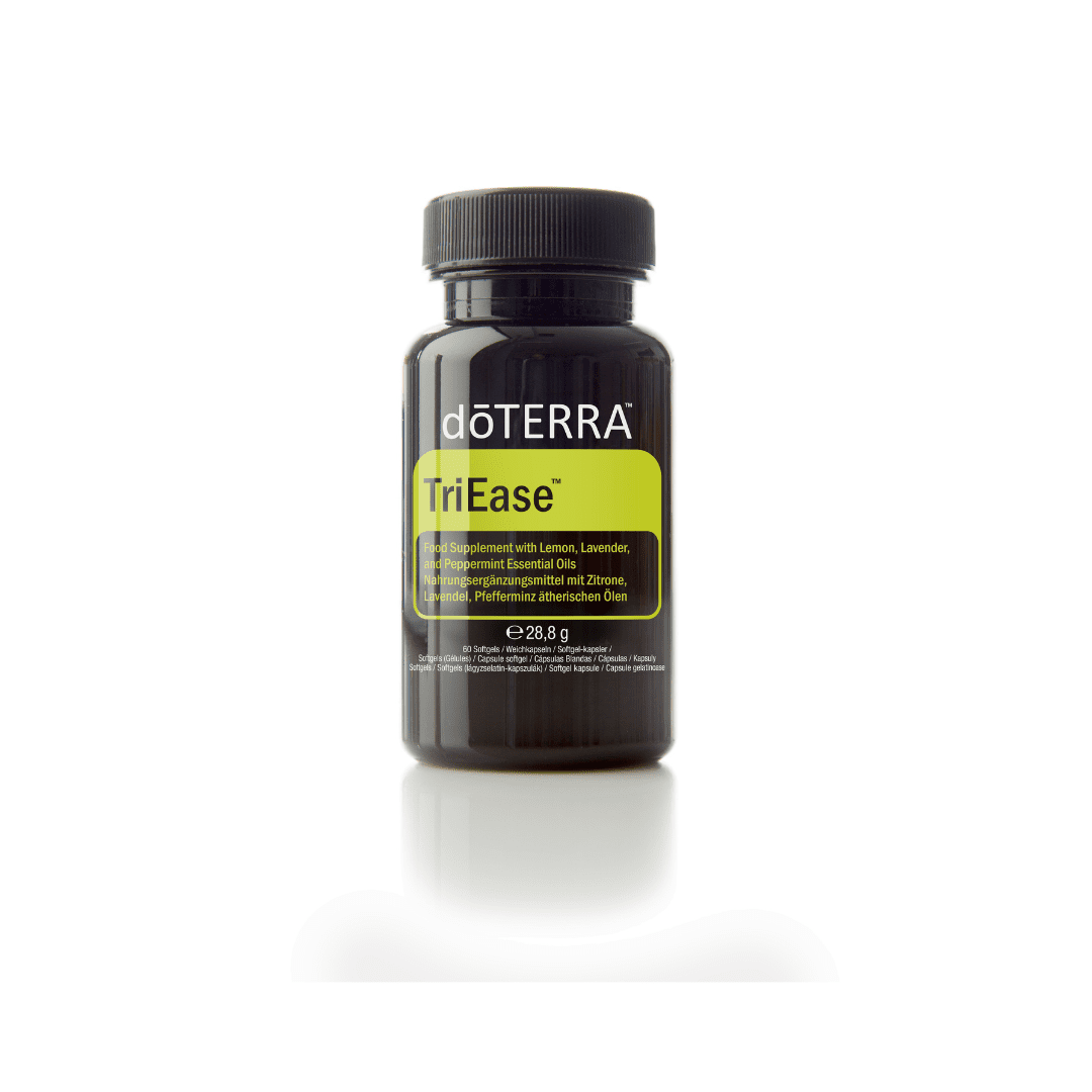 El aceite de Limón tiene un alto contenido de limoneno, que se ha demostrado que respalda una respuesta inmunitaria saludable en investigaciones experimentales.* Cuando se ingiere, la Lavanda es conocida por sus efectos calmantes y equilibrantes, mientras que la Menta ayuda a respirar despejadamente.* Encapsulado en una cápsula blanda de tapioca, TriEase se puede administrar de manera segura y es fácil de usar cuando se está corriendo, viajando o pasando tiempo al aire libre.
